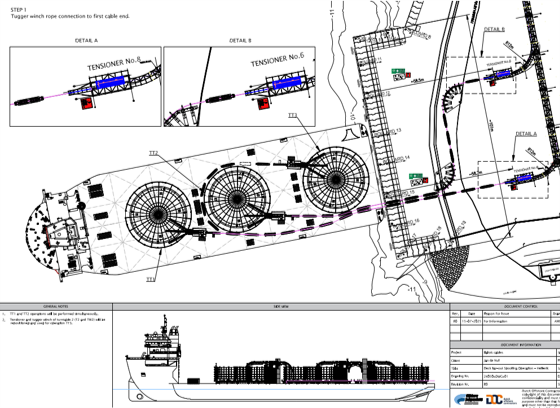 • Preparation of the subsea rigging with divers for the 1200 ton met mast concrete foundation